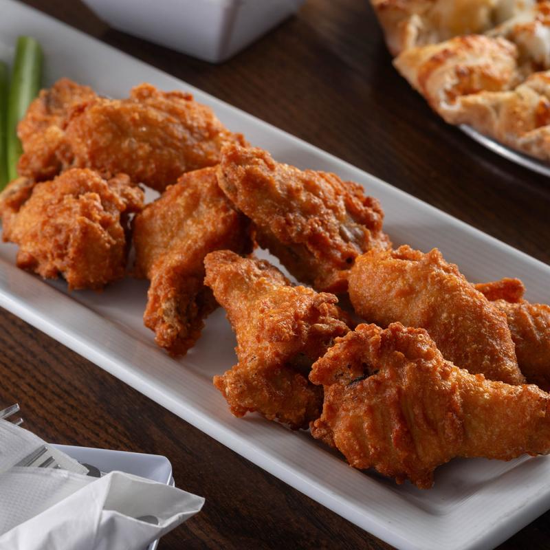 Tossed with a choice of Buffalo, BBQ, Hot Honey BBQ, Boom Boom, Sweet Chili, or Plain. Served with celery sticks and ranch or bleu cheese for dipping.