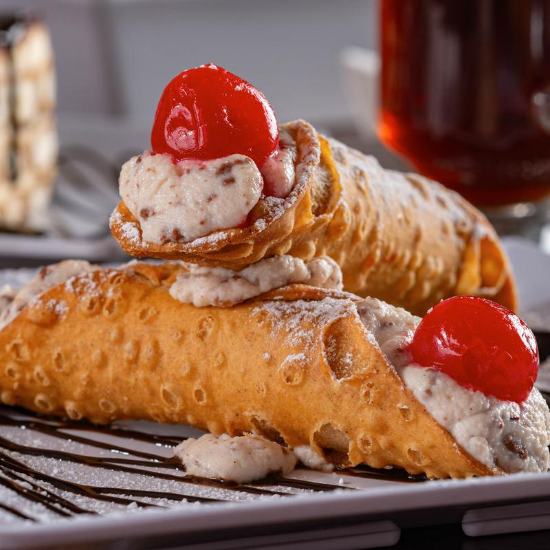 Two pastry shells stuffed with a sweet ricotta cream and miniature chocolate chips. This is a traditional Italian favorite that will always make you smile.